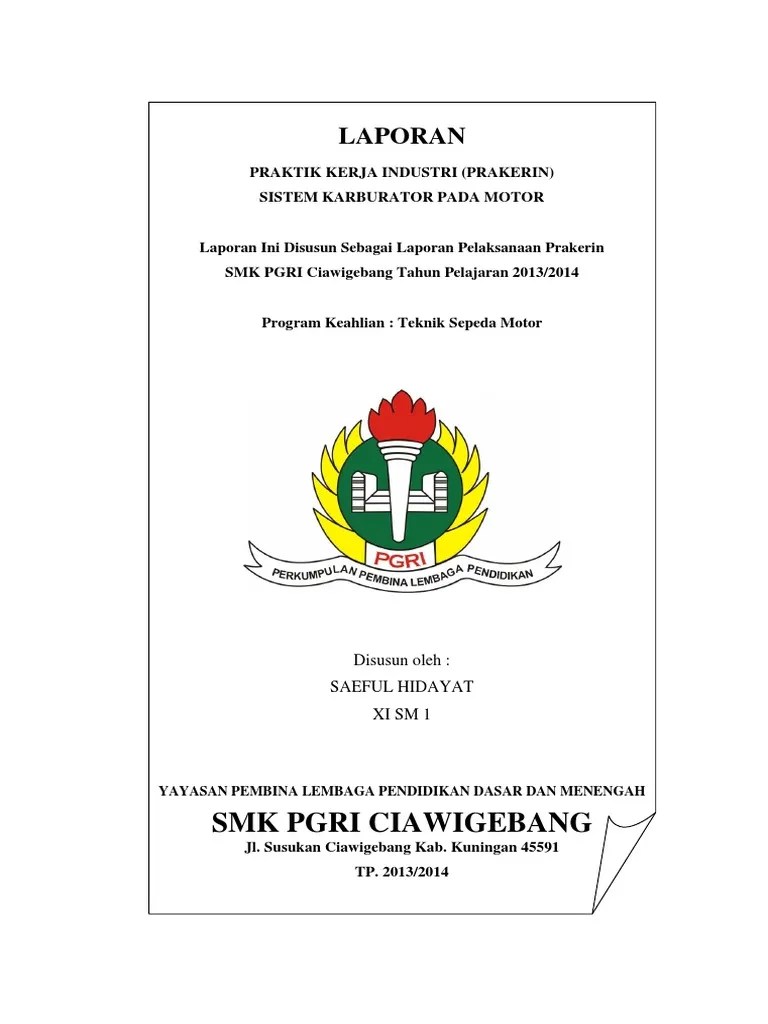 Contoh Laporan Pkl Tsm Tentang Karburator - Cover Laporan Praktek Kerja Industri : Dimana hal ini sangat dibutuhkan oleh siswa smk negeri i tengaran jurusan tsm.